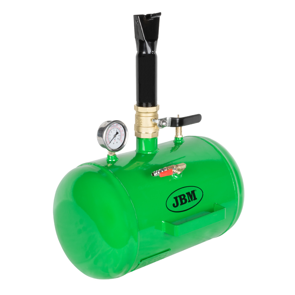 Le canon à air JBM est conçu pour le montage rapide de pneus sans chambre à air, le canon à air JBM de 18 litres est un outil puissant et indispensable pour les ateliers de mécanique, garages ou stations-service. Il permet d’injecter un fort débit d’air dans le pneu afin de plaquer instantanément les talons sur la jante, garantissant une mise en pression efficace et rapide.