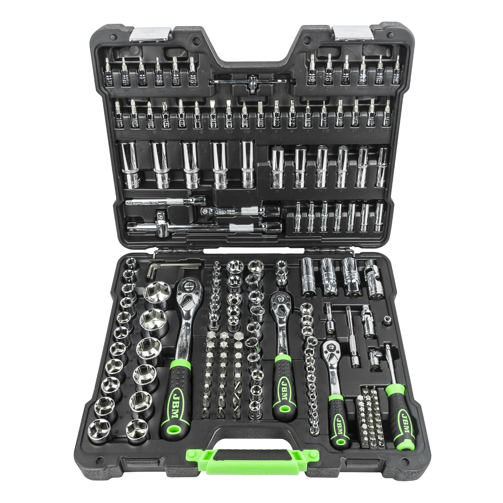 Le coffret à outils JBM 179 pièces à finition chromée est un ensemble complet et polyvalent, conçu pour répondre aux besoins des mécaniciens professionnels comme des bricoleurs exigeants. Grâce à ses douilles hexagonales (6 pans), ses trois cliquets 72 dents et son large choix d’embouts et d’accessoires, il permet d’intervenir efficacement sur tous types de travaux mécaniques.
