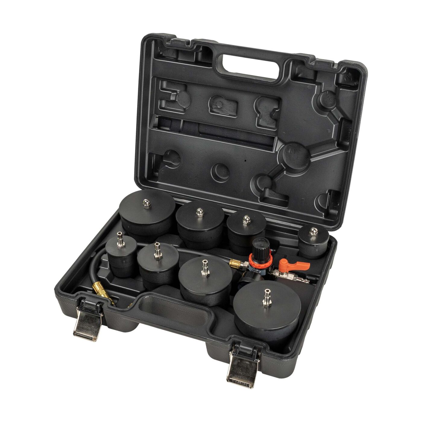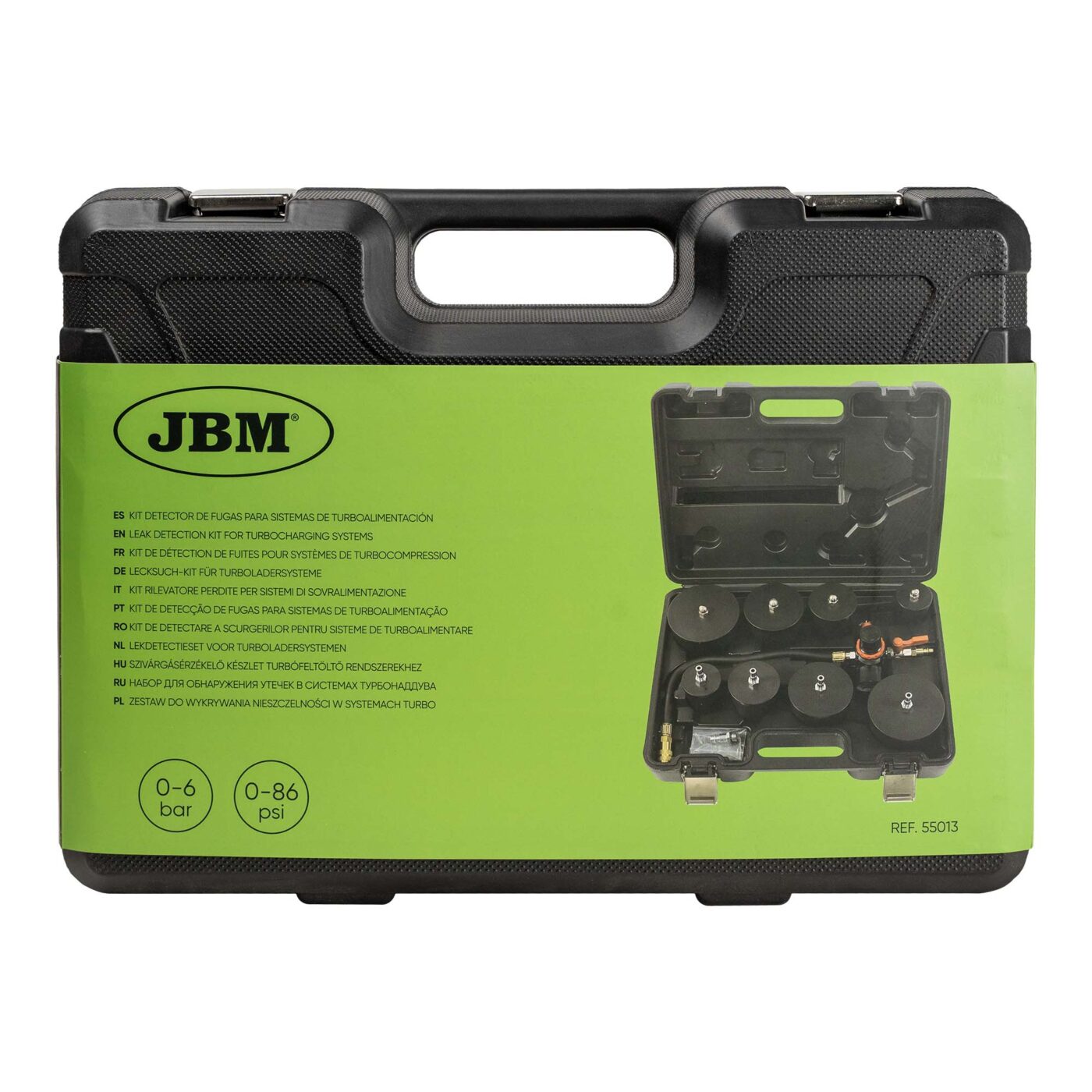 Le kit JBM de détection de fuites pour systèmes de turbocompression permet de pressuriser le circuit d’admission à l’aide d’air comprimé basse pression, correctement régulé. Il facilite l’identification rapide des fuites sur durites, échangeurs, raccords et soupapes du système turbo.