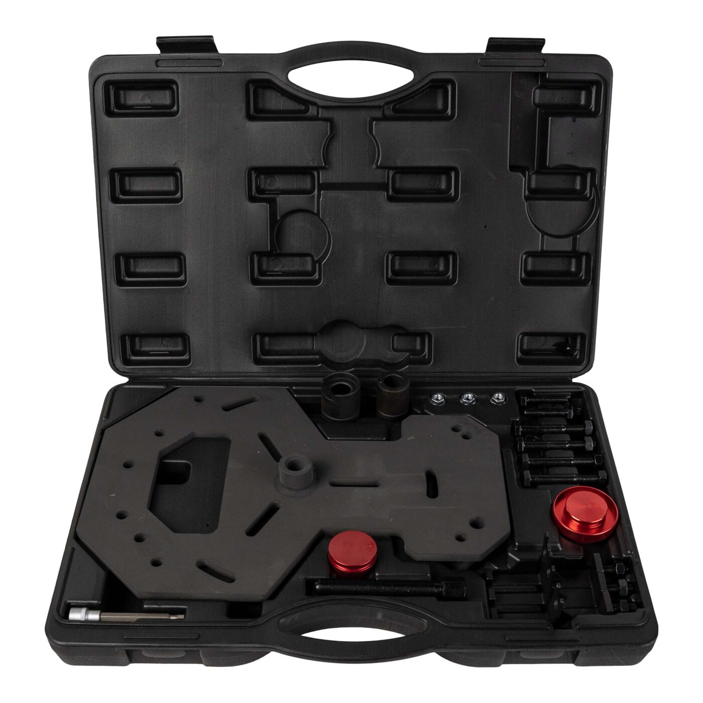 Le kit extracteurs d’embrayage double JBM est spécialement conçu pour le démontage et l’entretien des transmissions à double embrayage Ford DSG/DCT (Powershift). Il permet une dépose précise et sécurisée des modules d’embrayage, sans détériorer les composants internes de la boîte.